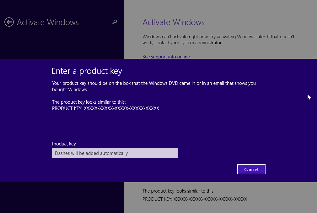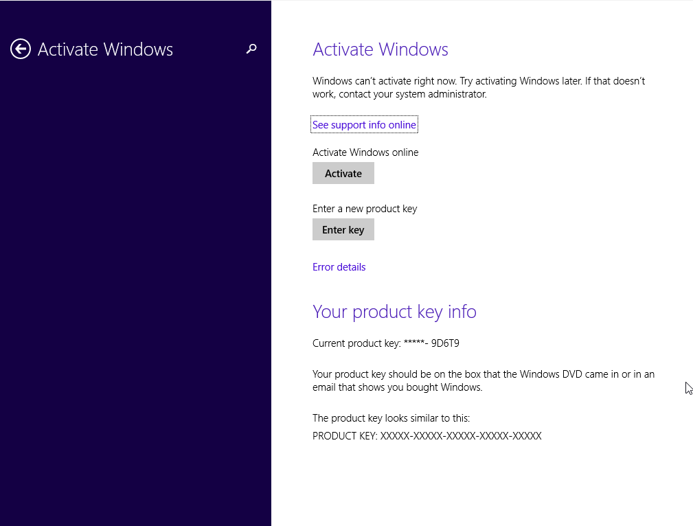 Make sure your Microsoft Windows version matches the Microsoft Windows version of the key.