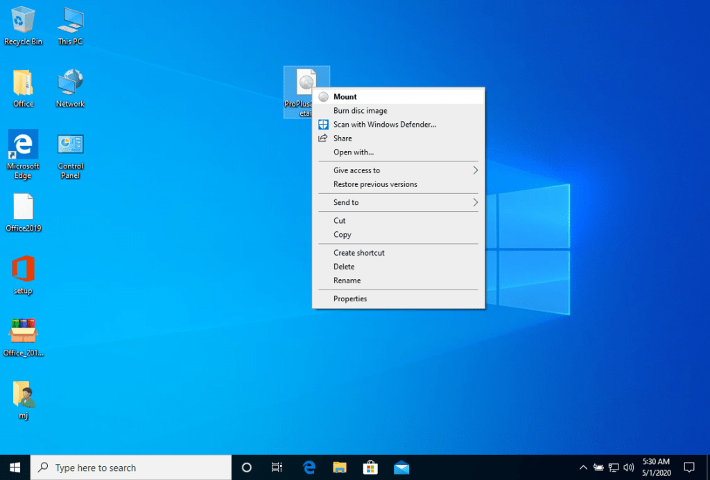 Once the download is complete, right click on the downloaded file and choose the “Mount” option from the dropdown menu.